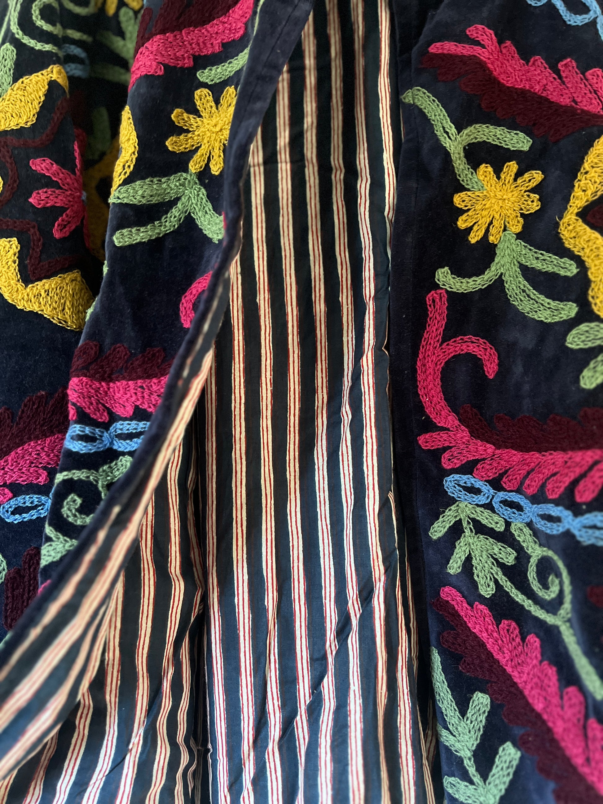 Navy And Pink Velvet Suzani Jacket
