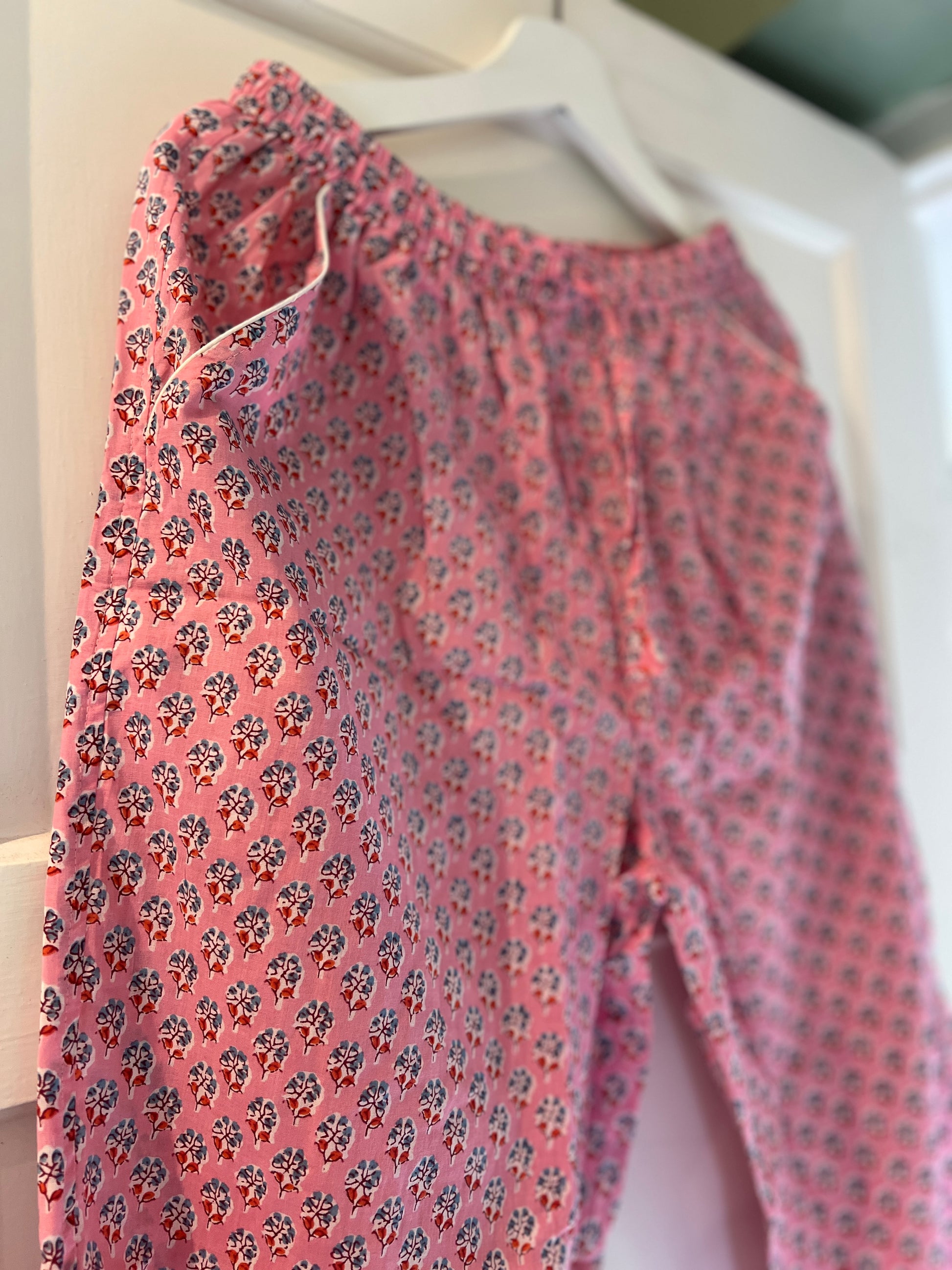 Experience comfort with Spring Pink Pyjamas, crafted from 100% cotton for breathability and softness. The use of natural fabrics ensures skin-friendly wear, while the elasticated waist provides flexibility for ease of movement. Each set is conveniently packed in a pouch, perfect for travel or storage.