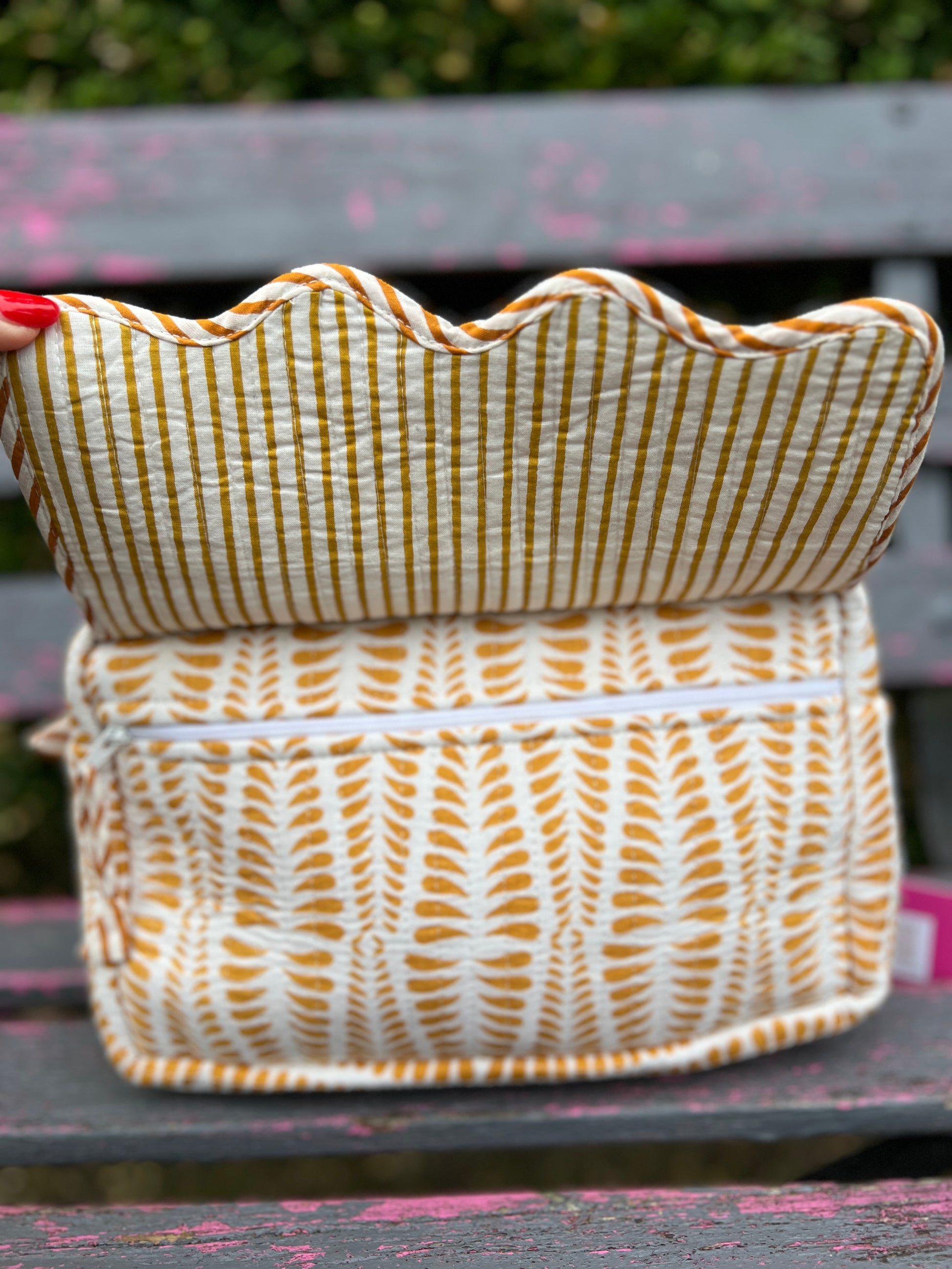 Indulge in luxury with our Blockprint Flap Washbags. Handmade in Jaipur, each bag features a scalloped flap pocket and vibrant hues. Our best selling item and the first to be sold online, these washbags are a must-have for the sophisticated and exclusive buyer. Elevate your travel game with these exquisite washbags.